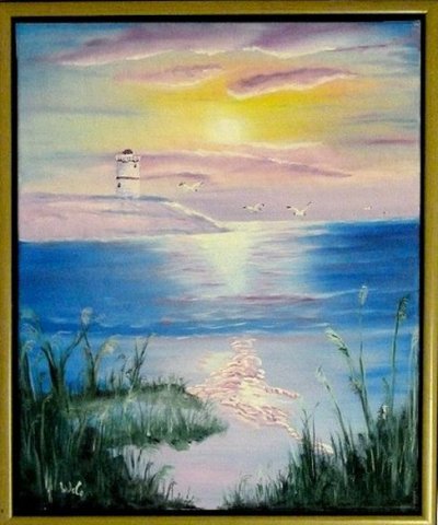 Segelboote vor Leuchtturm 40-50 Oelbild